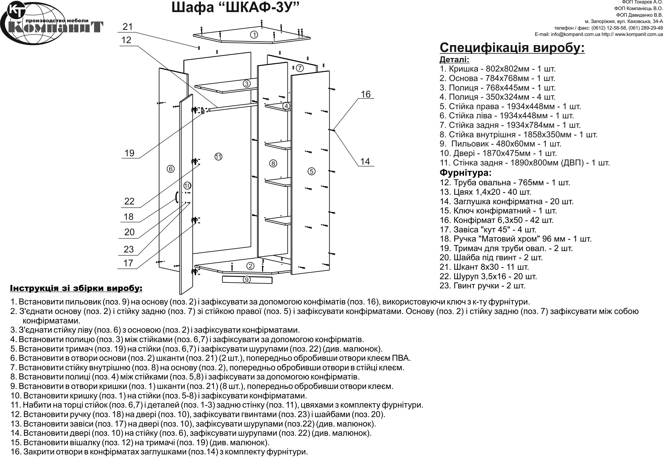 • Шафа-3У кутовий білий Компаніт 80х80х195 см, фото 8